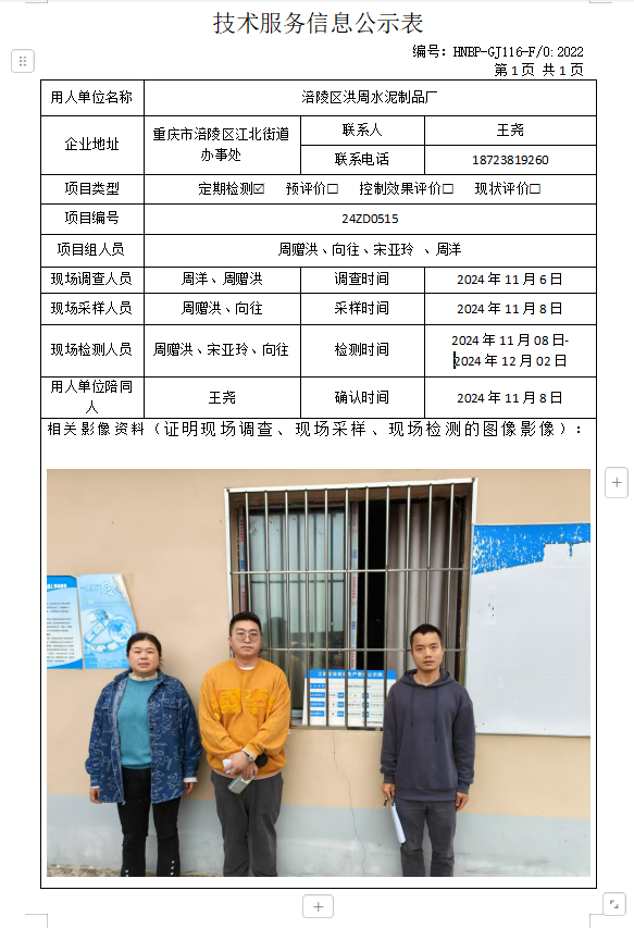 涪陵區(qū)洪周水泥制品廠定期檢測項目公示