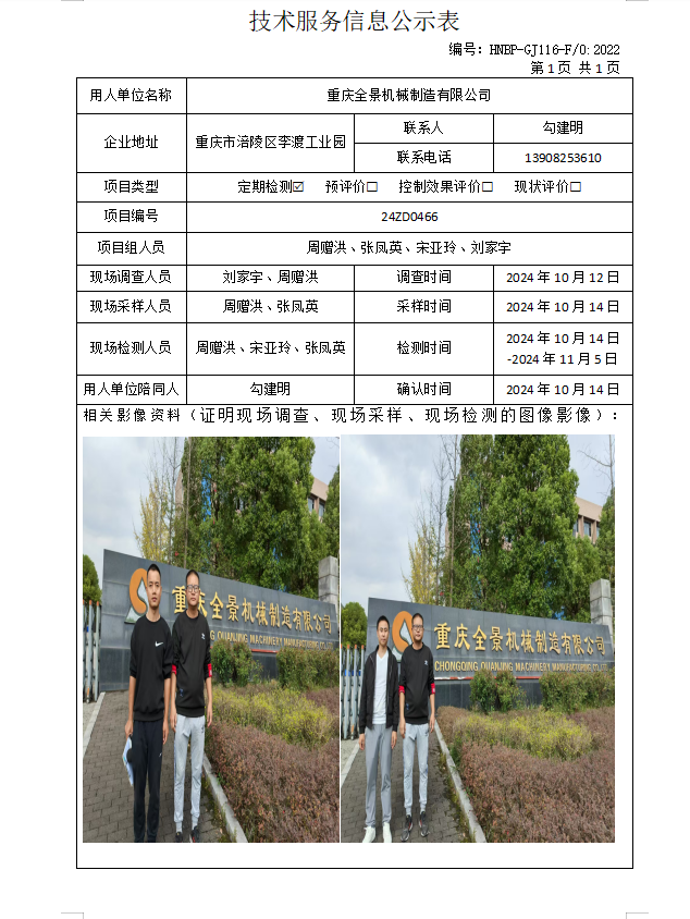 重慶市彩色通科技有限公司定期檢測項目公示...