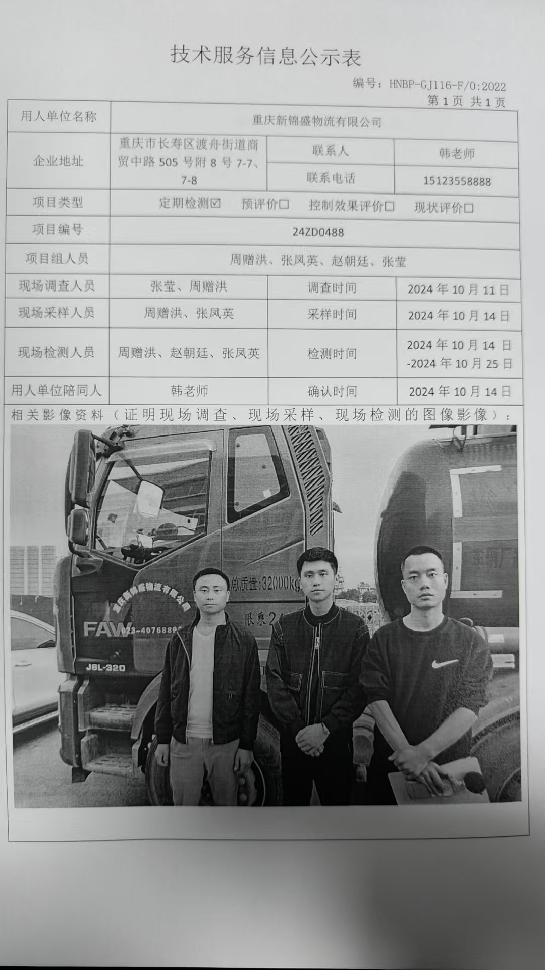 重慶新錦盛物流有限公司定期檢測項(xiàng)目公示