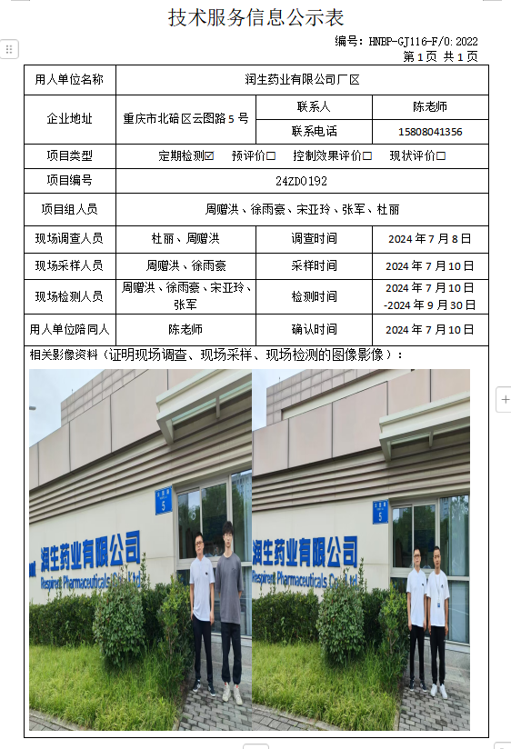 潤生藥業(yè)有限公司研發(fā)中心定期檢測項目公示