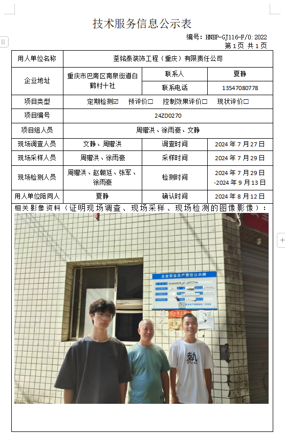 荃銘泰裝飾工程(重慶)有限責(zé)任公司定期檢測(cè)項(xiàng)目公示