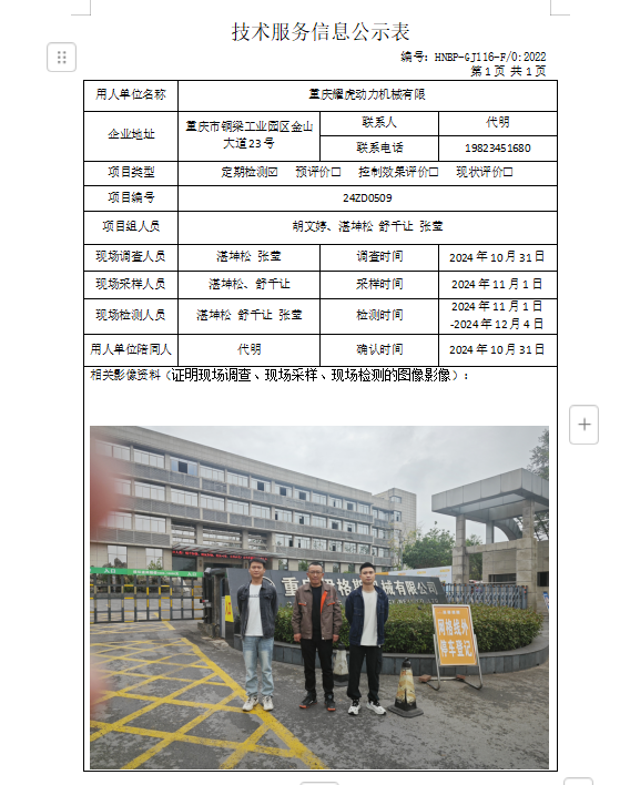 職業(yè)衛(wèi)生評價(jià)項(xiàng)目公示
