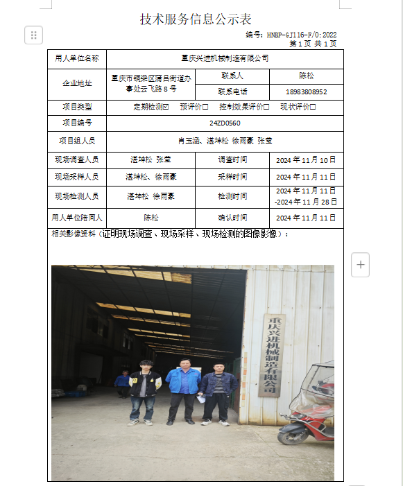 職業(yè)衛(wèi)生評價項(xiàng)目公示