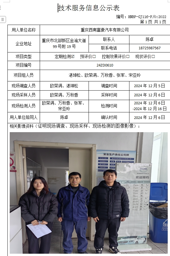 重慶西南富豪汽車有限公司定期檢測(cè)項(xiàng)目公示