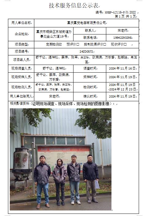 重慶重變電器有限責(zé)任公司定期檢測項目公示