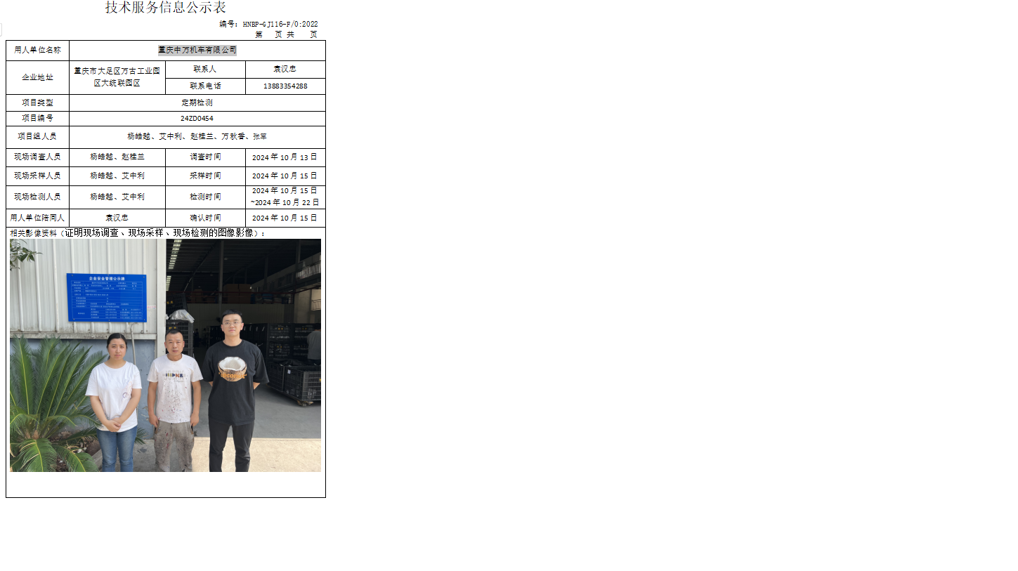 職業(yè)衛(wèi)生檢測項目公示