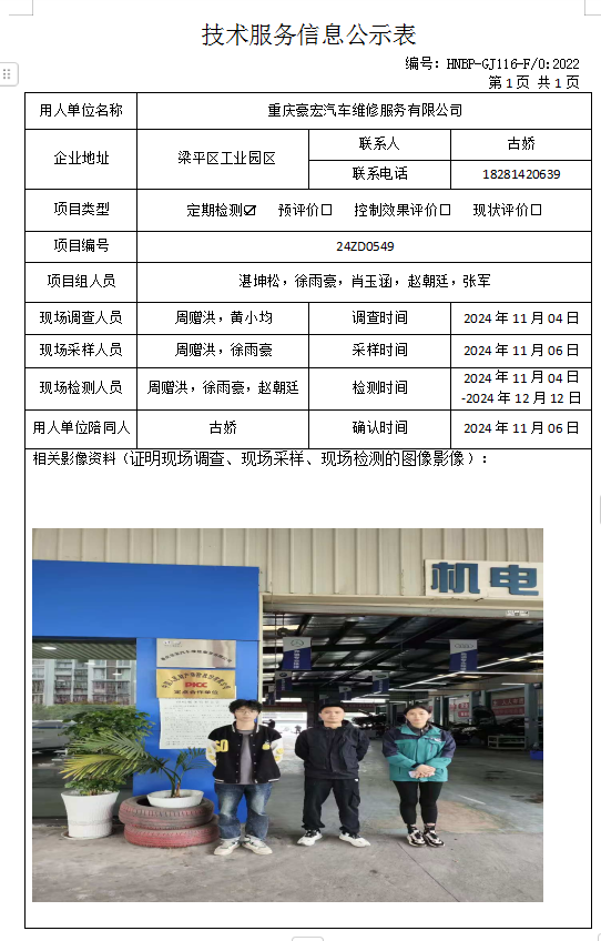 重慶豪宏汽車維修服務(wù)有限公司定期檢測項目公示