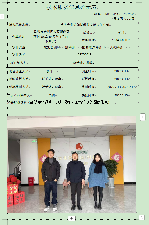 重慶大北農(nóng)飼料科技有限責任公司定期項目公示