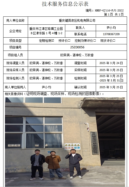 重慶鍵英液壓機(jī)電有限公司定期檢測項(xiàng)目公示