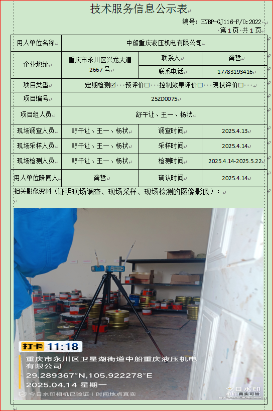 中船重慶液壓機(jī)電有限公司定期檢測項(xiàng)目公示