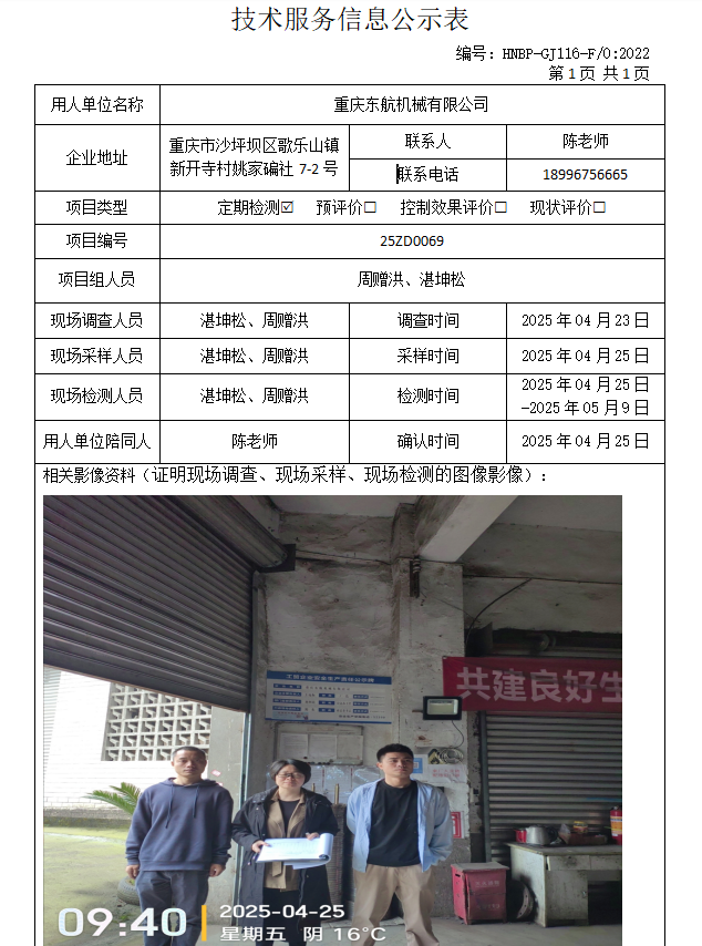 重慶東航機(jī)械有限公司定期檢測項目公示