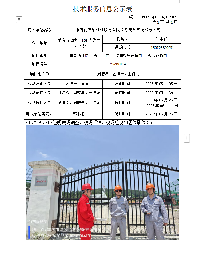 中石化石油機械股份有限公司天然氣技術(shù)服務(wù)分公司定期檢測項目公示