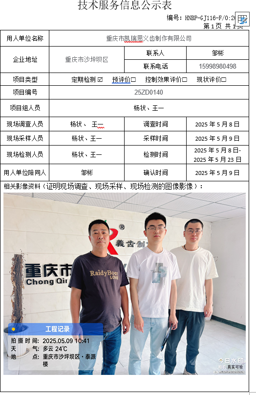 職業(yè)衛(wèi)生評(píng)價(jià)項(xiàng)目公示