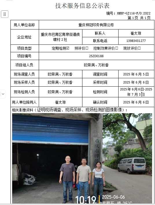 重慶樺冠印務(wù)有限公司定期檢測(cè)項(xiàng)目公示