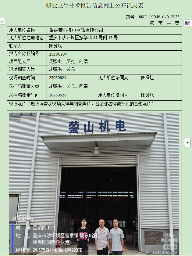 重慶鎣山機(jī)電制造有限公司定期檢測項目公示