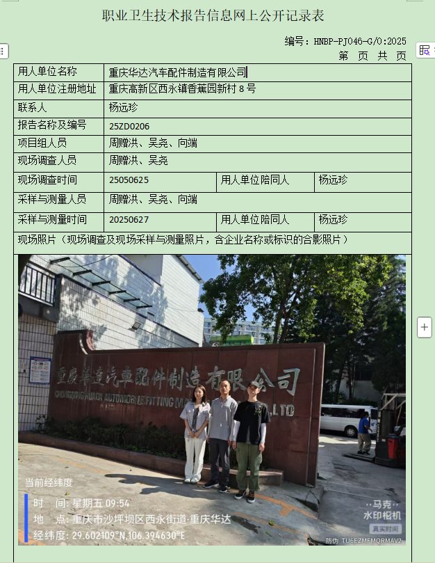 重慶華達(dá)汽車配件制造有限公司定期檢測項(xiàng)目公示