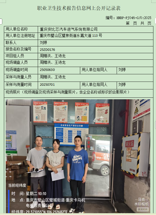 重慶安比芯汽車進氣系統(tǒng)有限公司定期檢測項目公示
