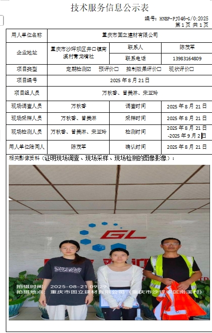 重慶市固立建材有限公司定期檢測項目公示