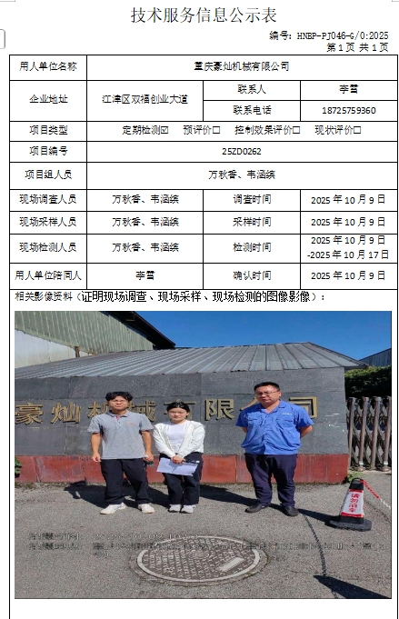 重慶金浪機(jī)電制造有限公司定期檢測(cè)公示項(xiàng)目...