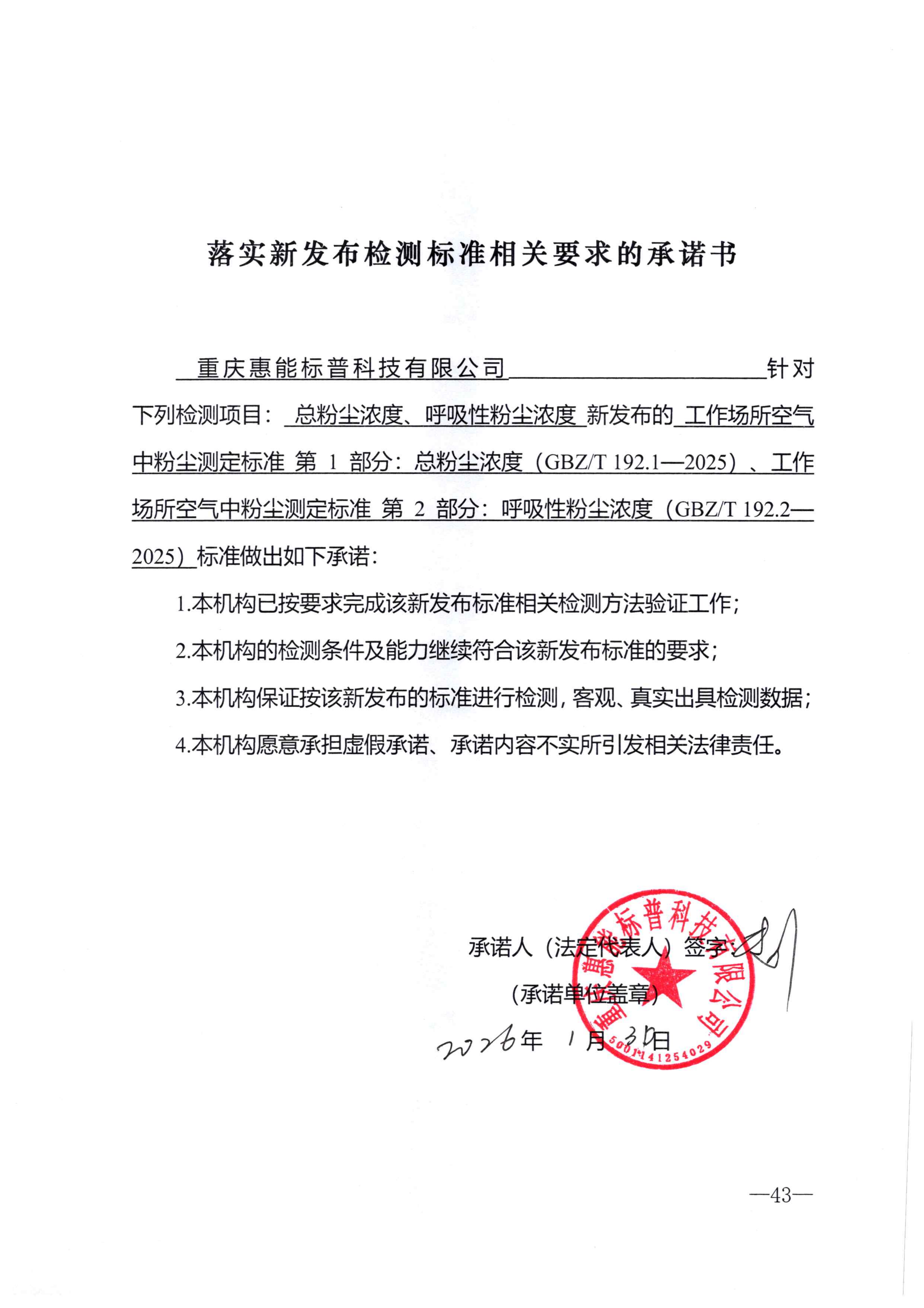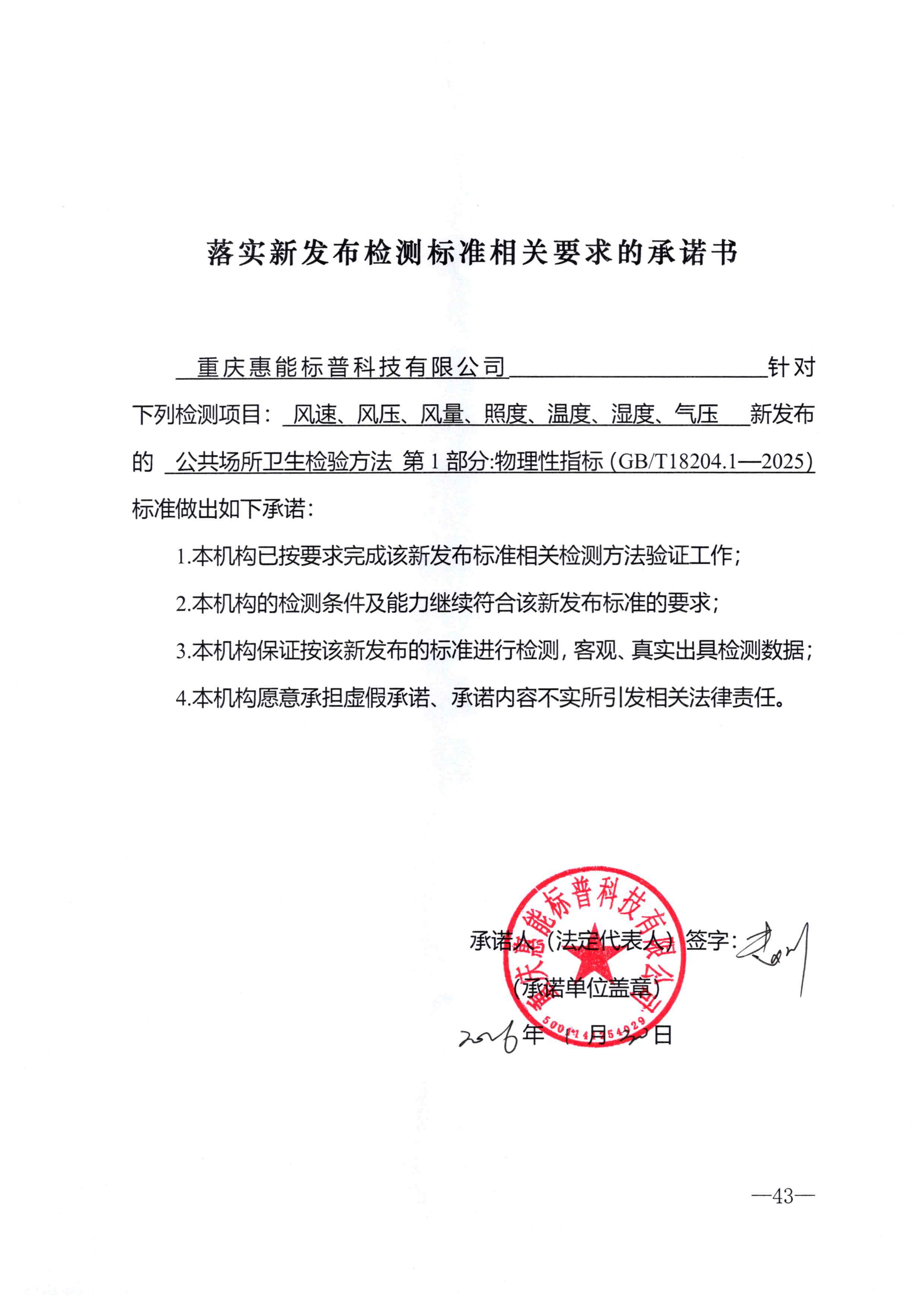 落實(shí)新發(fā)布檢測(cè)標(biāo)準(zhǔn)相關(guān)要求的承諾書