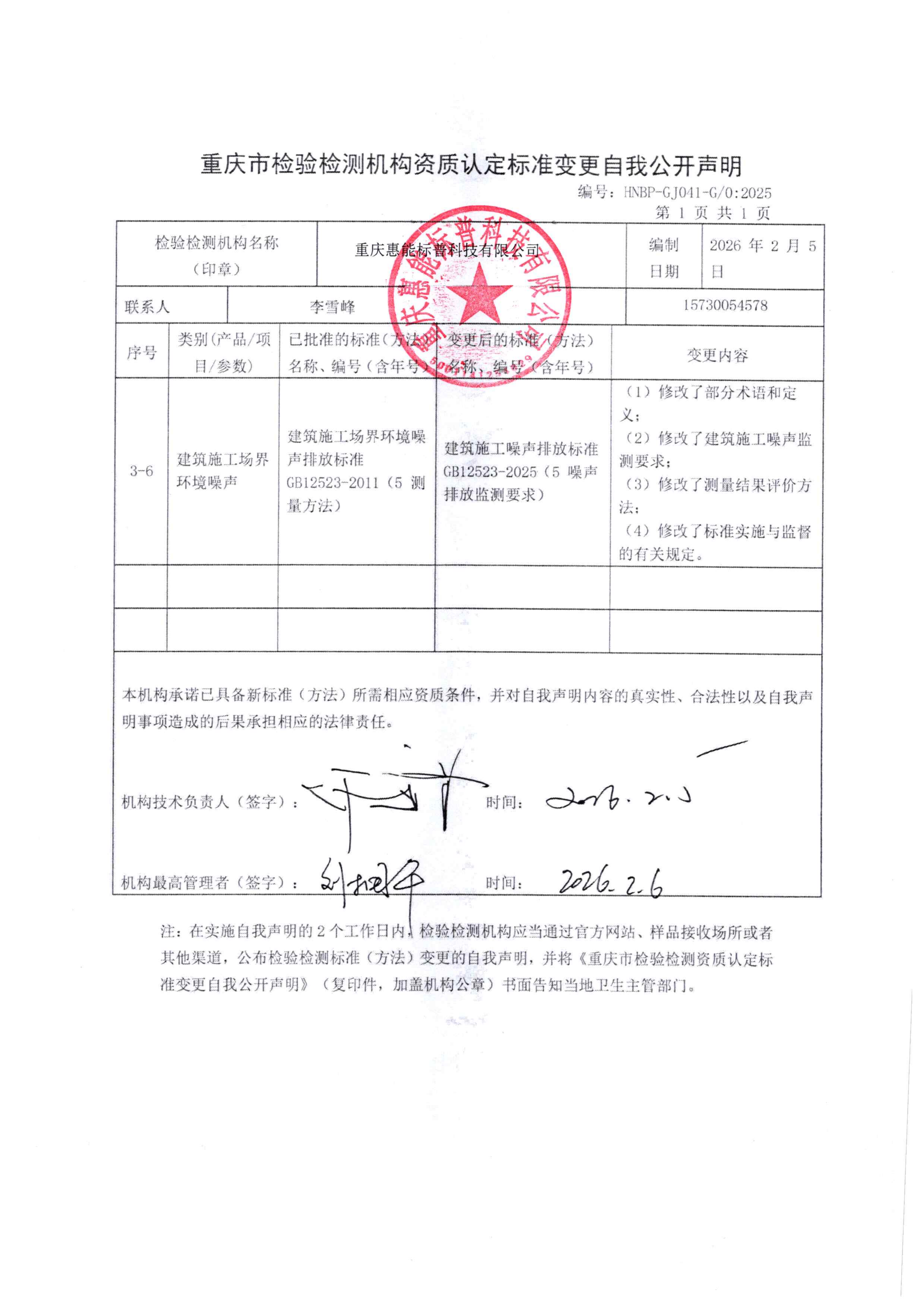標準變更自我公開聲明