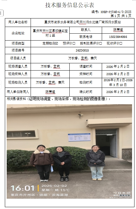 重慶市渝東水務(wù)有限公司開州污水處理廠南郊污水泵站定期檢測項目公示
