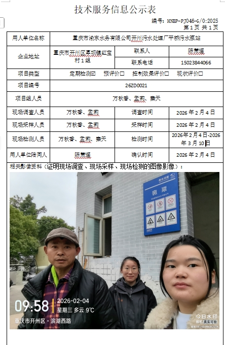 重慶市渝東水務(wù)有限公司開州污水處理廠平橋污水泵站定期檢測(cè)項(xiàng)目公示