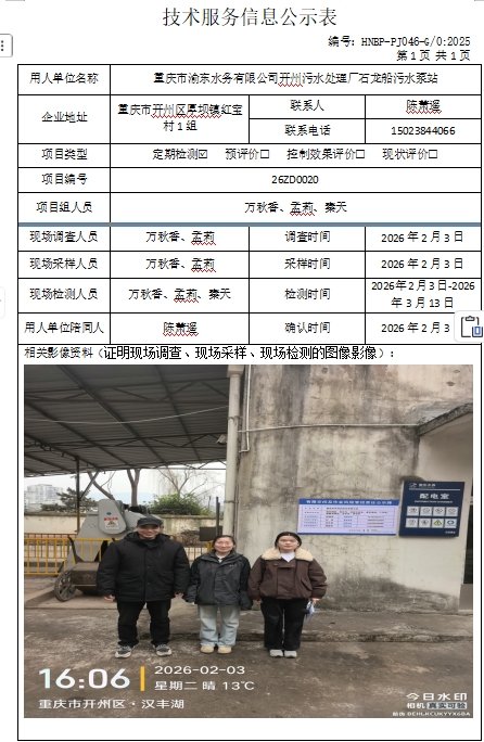 重慶市渝東水務(wù)有限公司開州污水處理廠石龍船污水泵站定期檢測(cè)項(xiàng)目公示